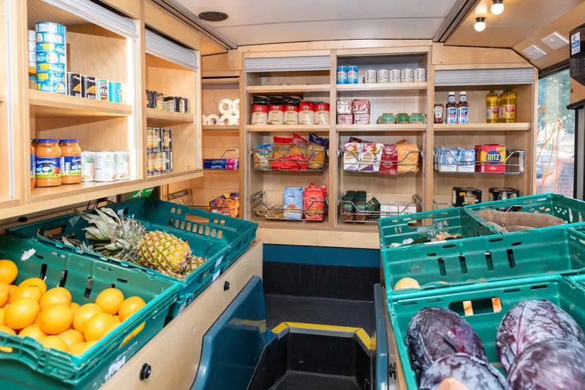 The London Food Bus brings nutritious, affordable food into the heart of deprived communities - tackling issues of both affordability and access. The double decker bus includes a social supermarket on the ground floor. Here, families can purchase healthy food for a fraction of the usual price. Upstairs, there is a café - a space where children can do homework or play and parents can socialise. Advice services are on hand to support families with wider issues such as debt, fuel and housing.