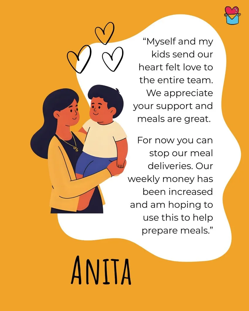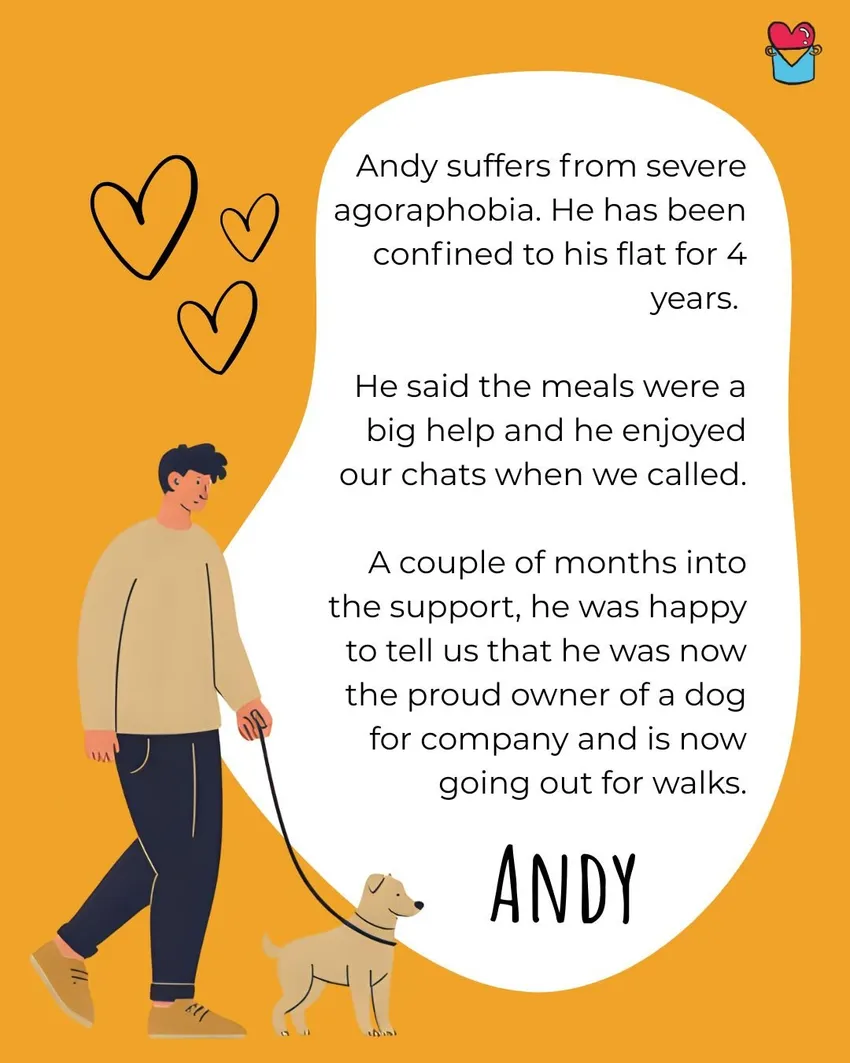 When people’s basic needs are met with dignity, they can begin to improve their circumstances. We turn surplus food into free, nutritious meals delivered to homes, temporary accommodation, or collection points. Alongside meals, we offer wellbeing calls and referrals to tailored services. This approach means people are eating well and feeling supported. People tell us this eases anxiety, boosts wellbeing, and helps them find long-term care and solutions.